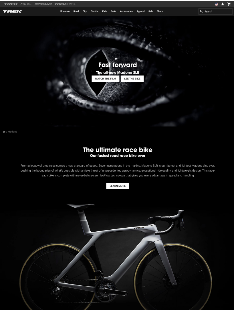 I took creative lead on the launch of this brand-new bike, which entailed creating and pitching multiple launch and teaser concepts, spearheading visual direction, storyboarding the bike’s launch video, and writing assets for all deliverables, including emails, press releases, social copy, and all landing pages.